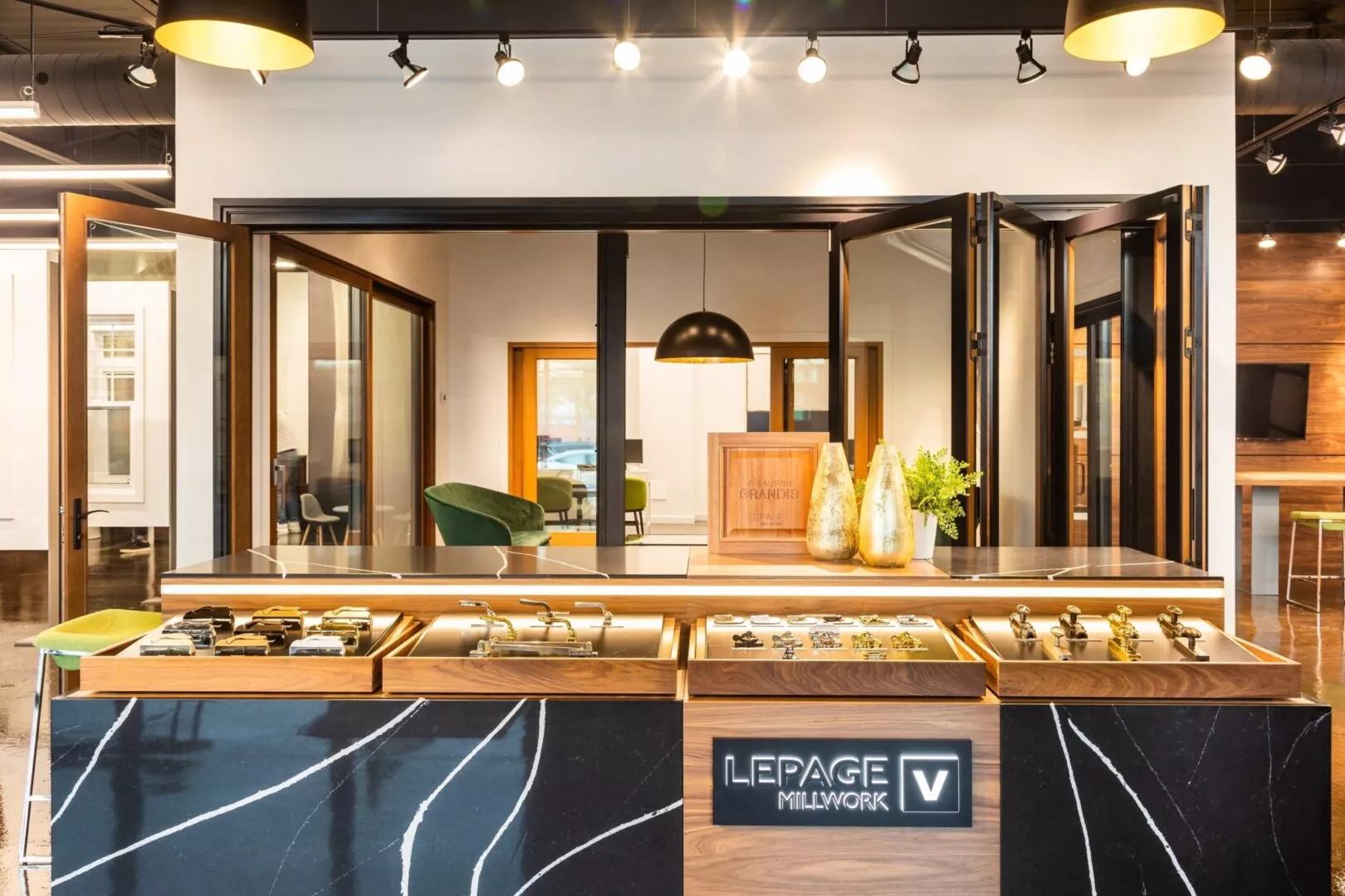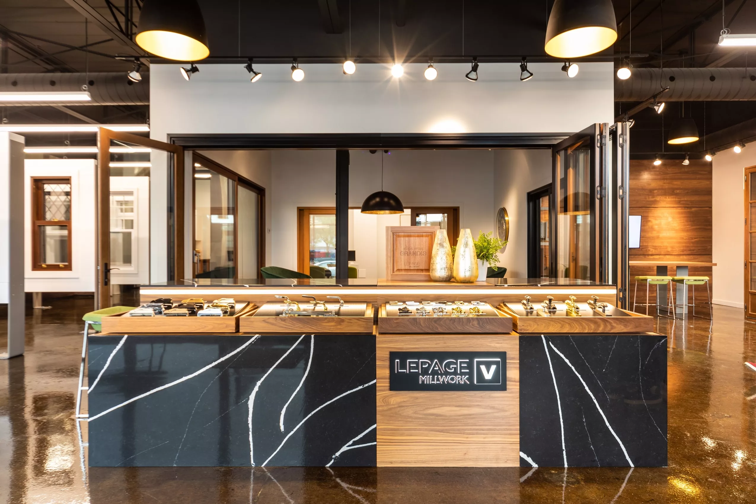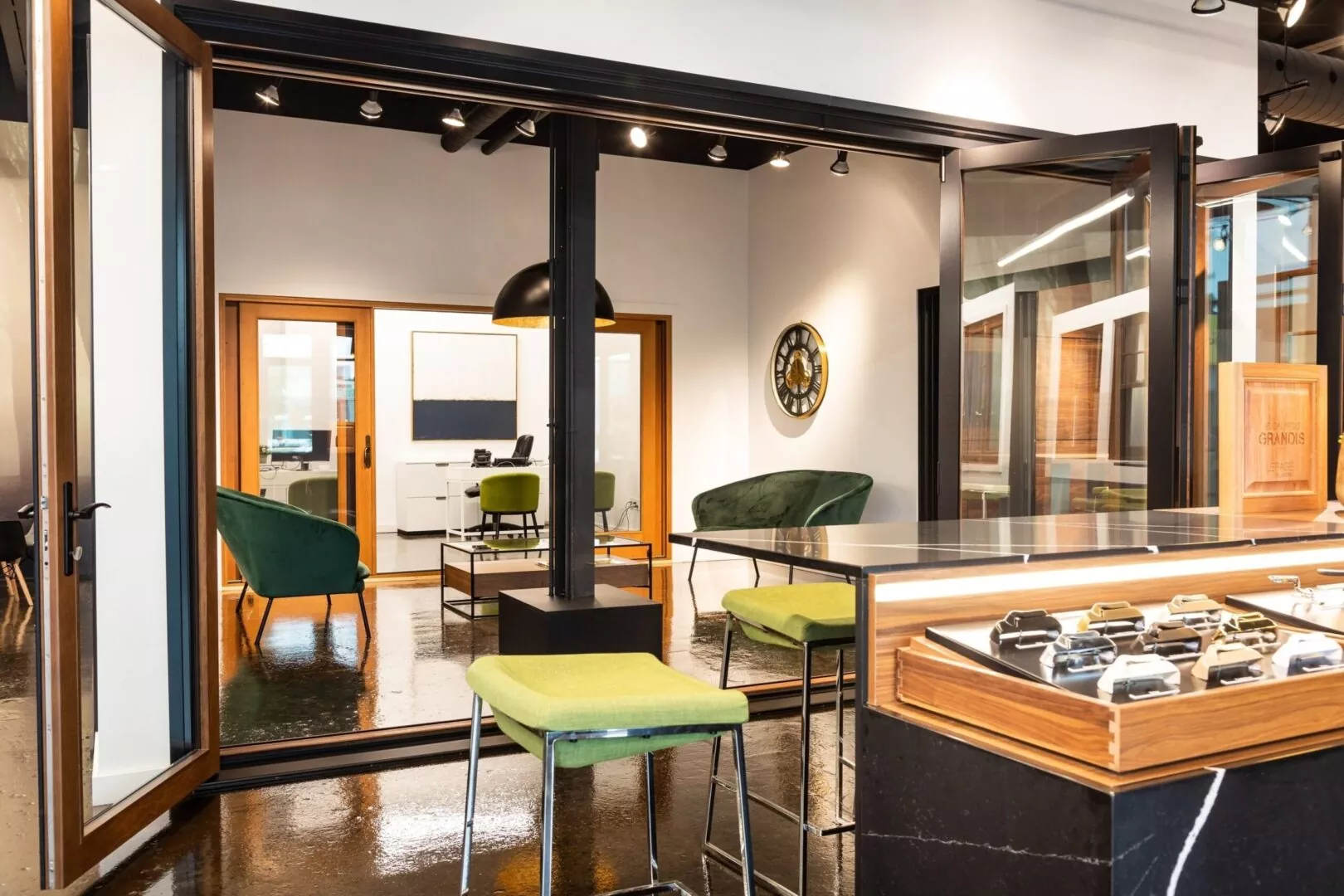 Aménagement d'une salle de montre de portes et fenêtres haut de gamme.